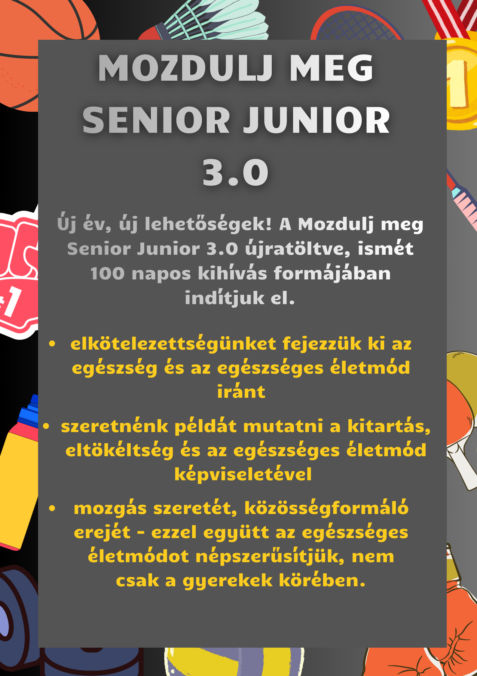 A város vezetésével összhangban továbbra is az a cél, hogy minél több gyermek sportoljon, minél jobb körülmények között. Bizonyított az, hogy a sportolók egészségesebbek és kitartóbbak, könnyebben elviselik a mai stresszes életet. A tömegsport mellett az élsportolók, a későbbi válogatottak nevelése is a szervezet feladata. Az is cél, hogy minél több gyerek megvalósíthassa a sport területén is az álmait, illetve a pályázati lehetőségek kihasználásával a sportinfrastruktúrát fejlesszék továbbra is a városban, amelyek révén nem csak a sportolók, hanem a lakosság sportolási lehetőségei és körülményei is javulhatnak.